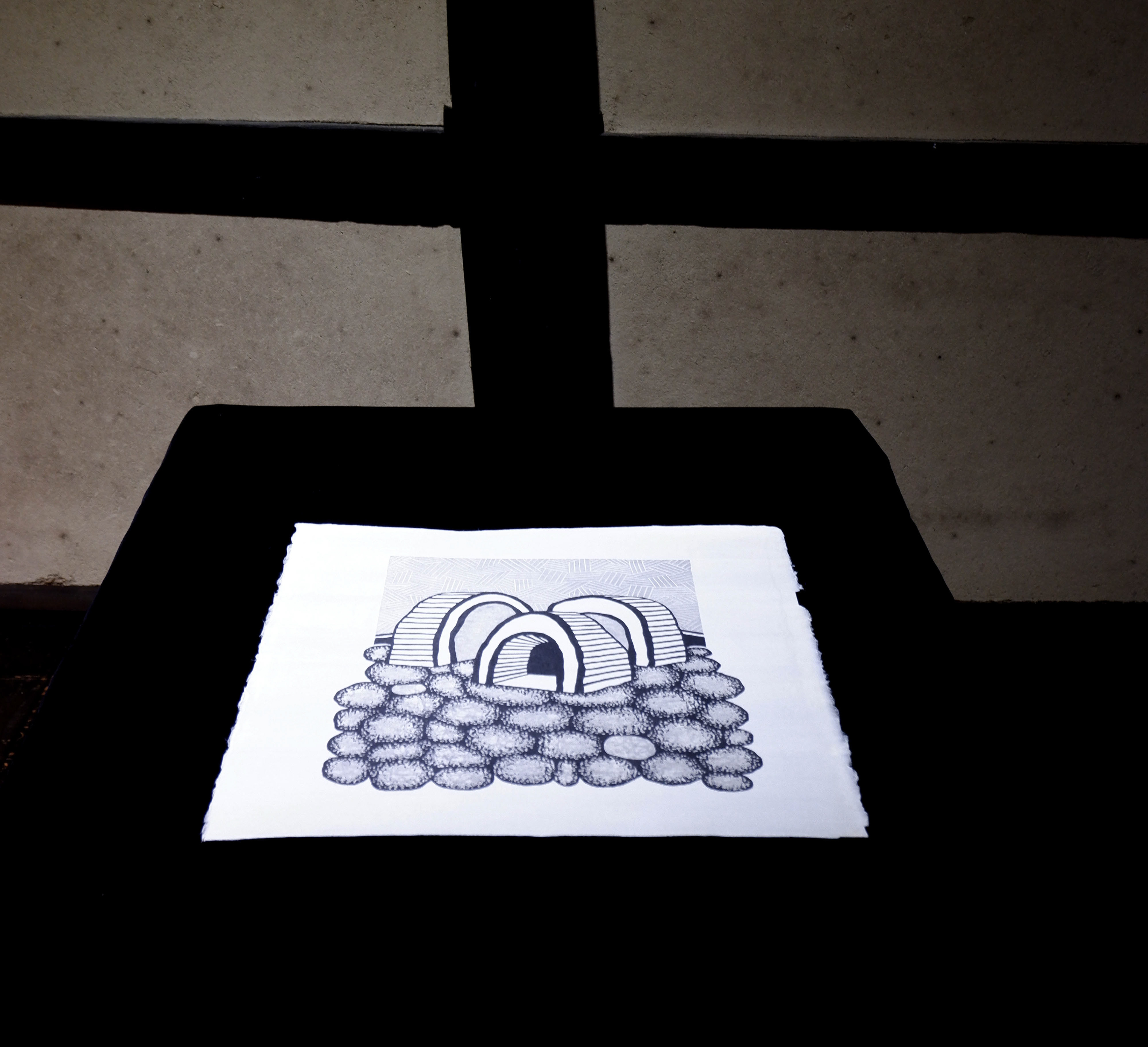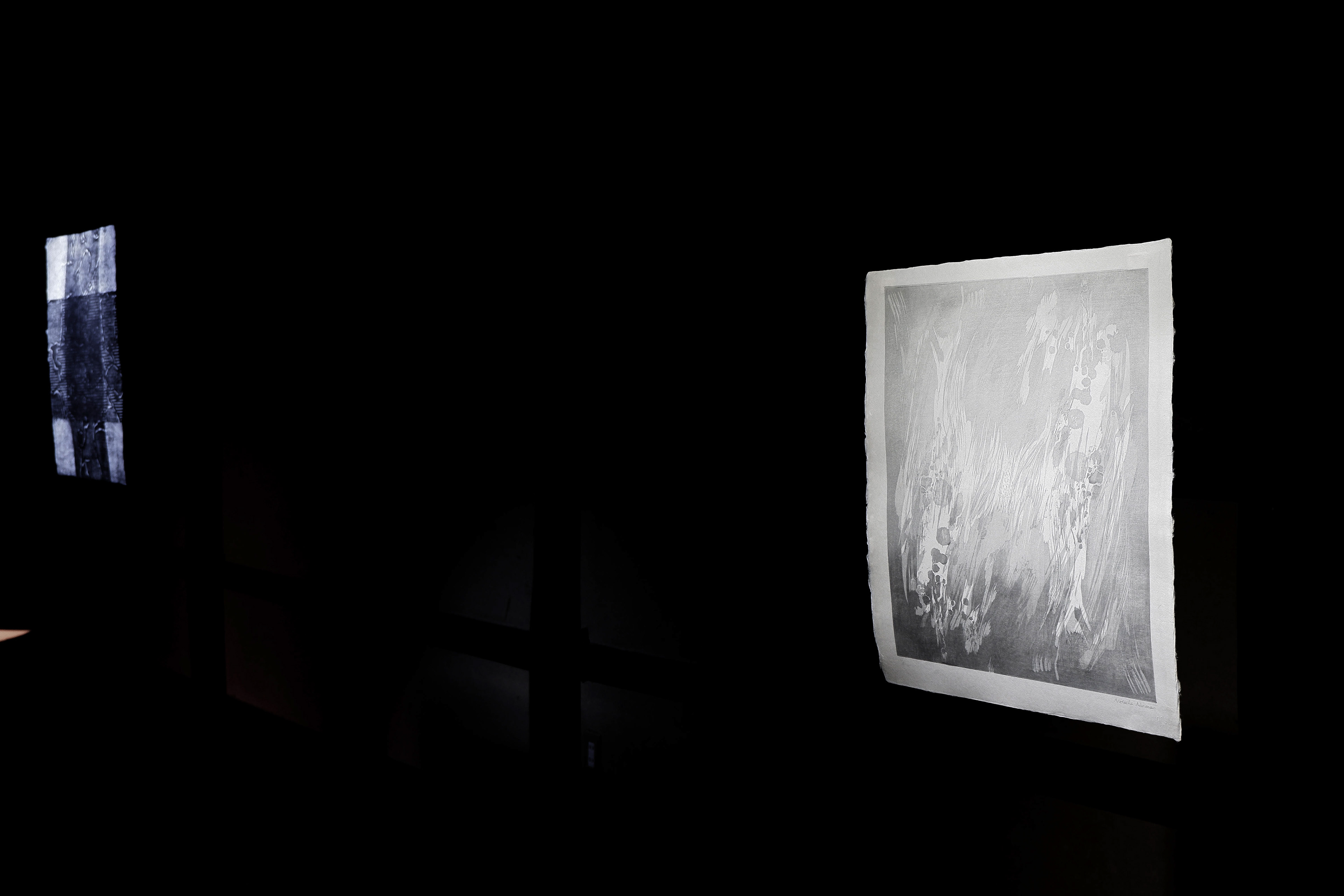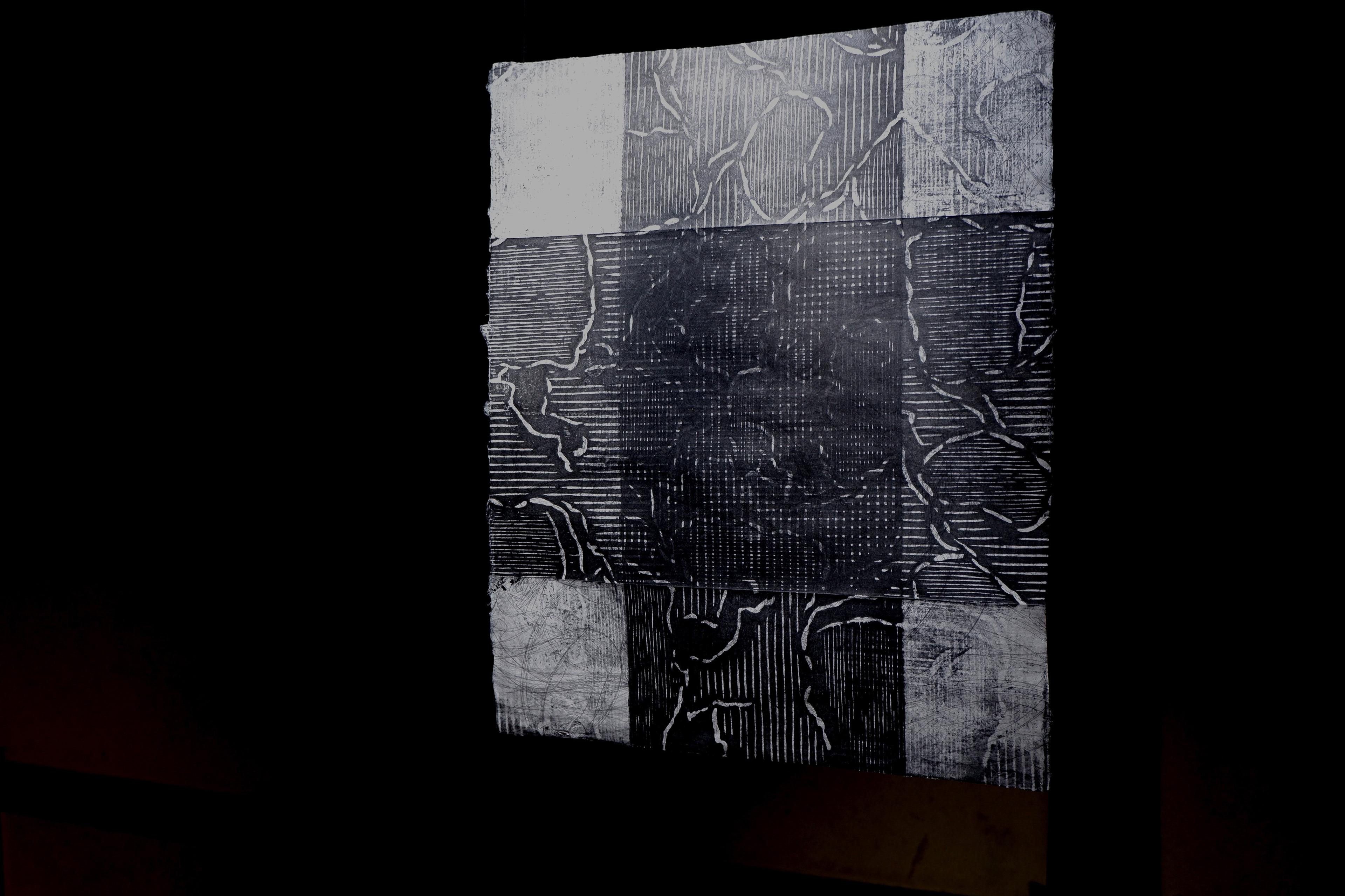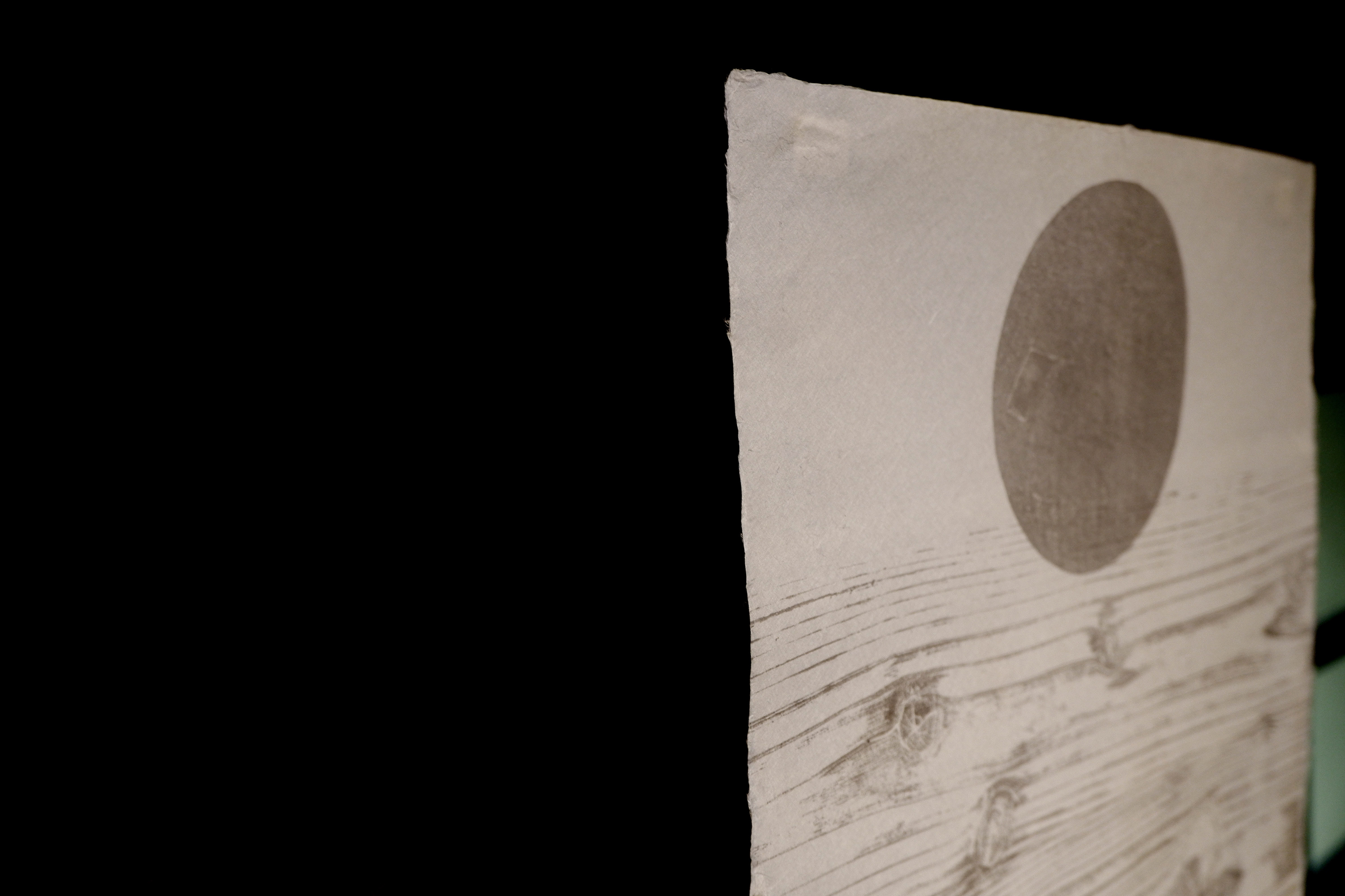 Through the materials of paper, wood, and ink made from soot, we explore the color black. The nine prints exhibited together explore the absence of color, positive and negative space, texture and form, line and shape.