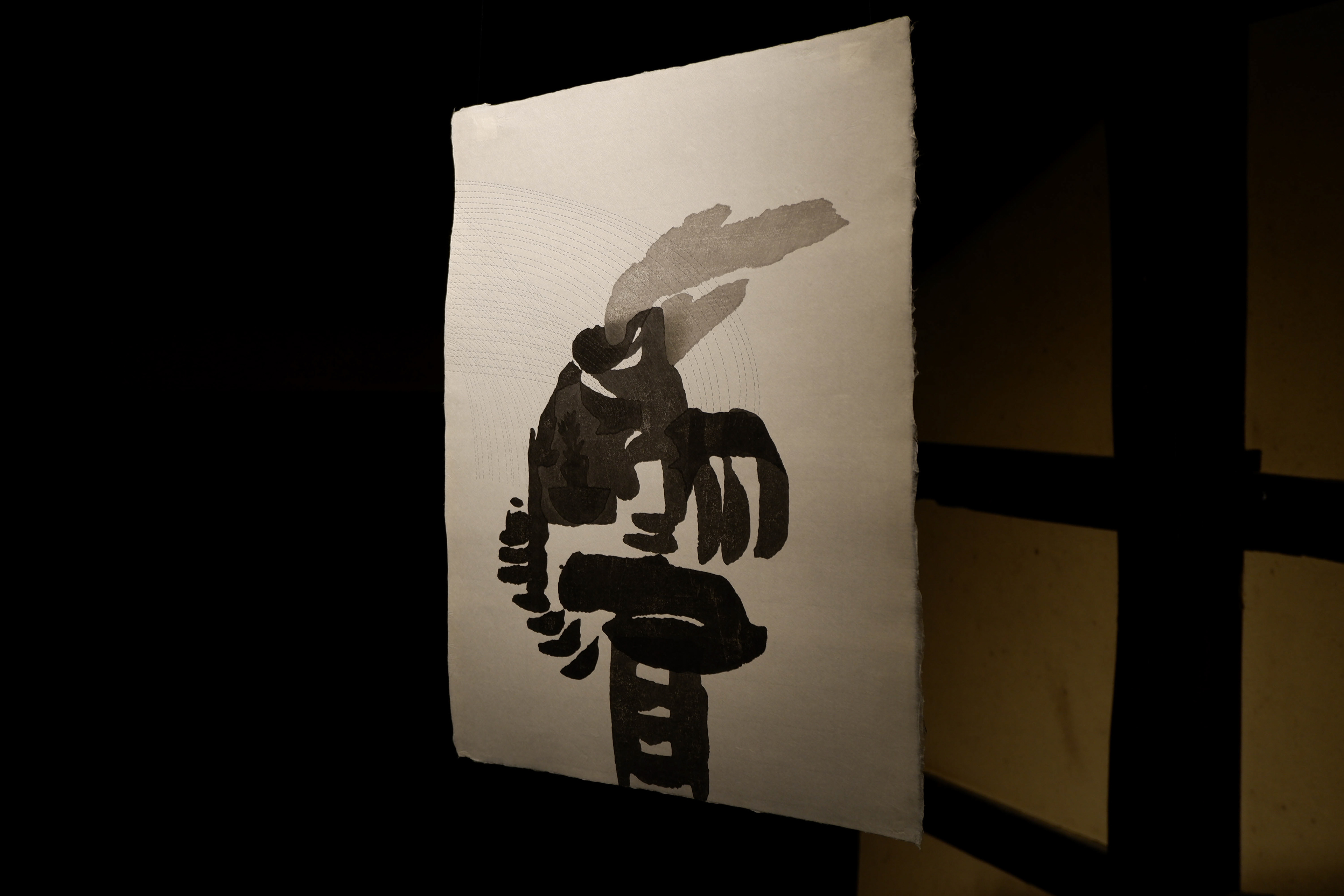 Mokuhanga is an ancient technique of water-based woodblock printing, where imagery is carved into wood, inked, and transferred to the paper by applying pressure with a handheld disk called a baren.