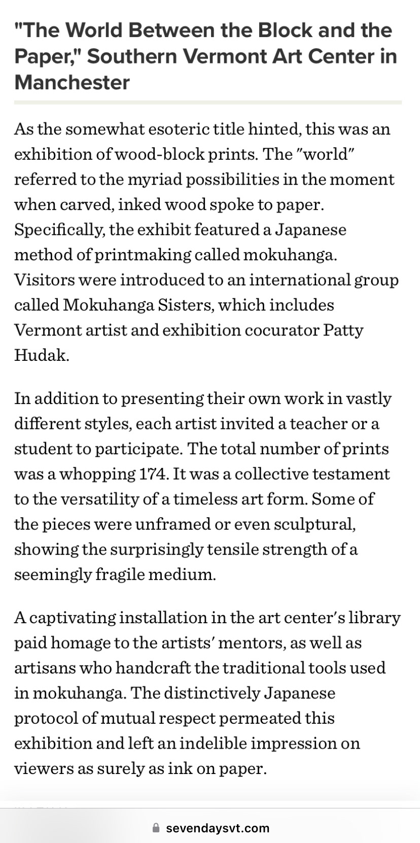 Mokuhanga Sisters at Southern Vermont Arts Center, in Manchester VT